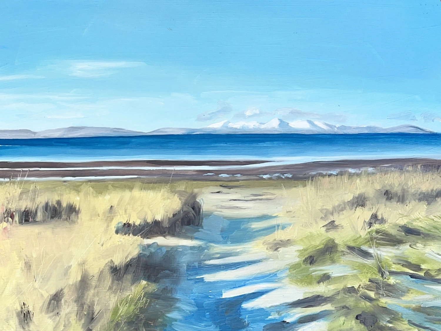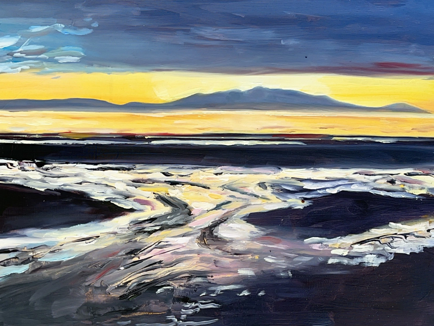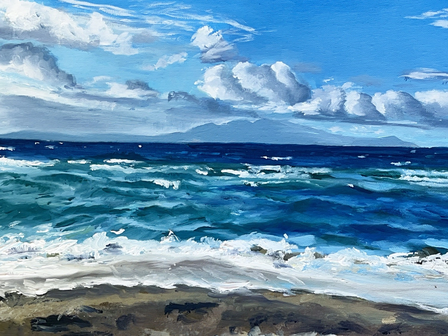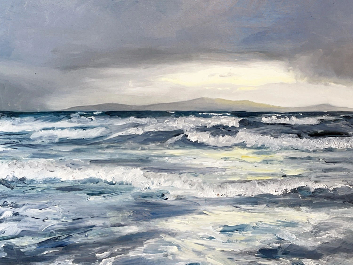 Crystal’s work is inspired by her deep connection to the sea, a passion that stems from her background as a competitive swimmer and surfer. She focuses on seascapes and landscapes, particularly the coastlines of Scotland.