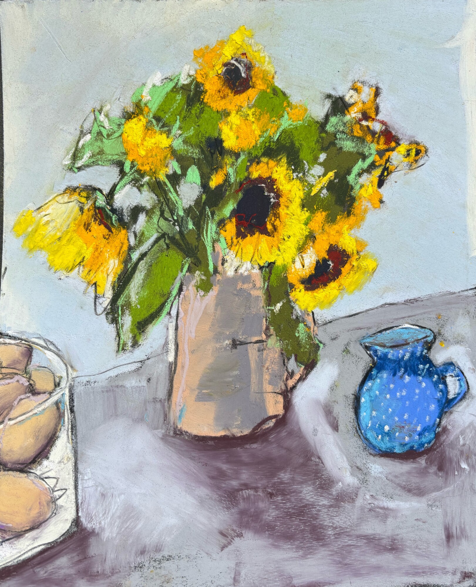 Using soft pastels and oil paints as my favourite media. It’s what I love to do…..